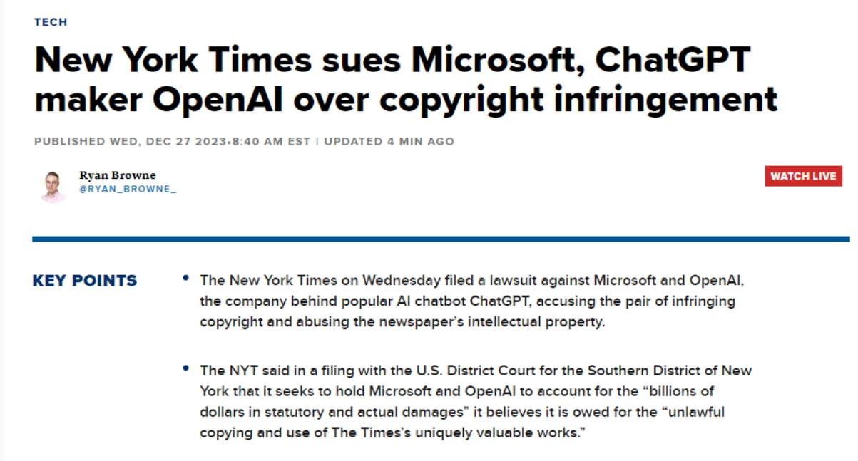 OpenAI和微软出格强调这些AI正在锻炼时利用了《纽约时报》的旧事报道,答应ChatGPT利用或部门利用其内容,称纽约时报对旧事营业做出巨额投入,
